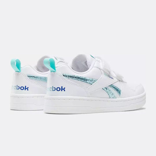 Αθλητικά Casual λευκό με σκρατς από την Reebok, Royal Prime 2.0, σε λευκό χρώμα με τιρκουάζ λεπτομέρειες.